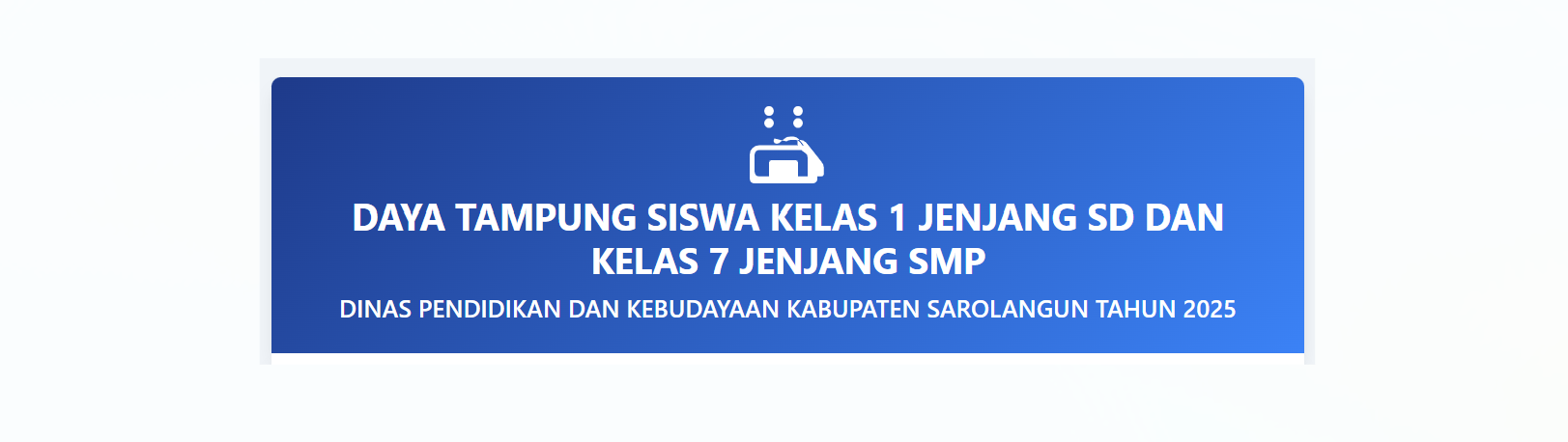 Daftar daya tampung siswa baru Jenjang SD dan SMP Kabupaten Sarolangun Tahun Ajaran 2025/2026 dapat diakses melalui link berikut : https://dayatampung.my.canva.site/